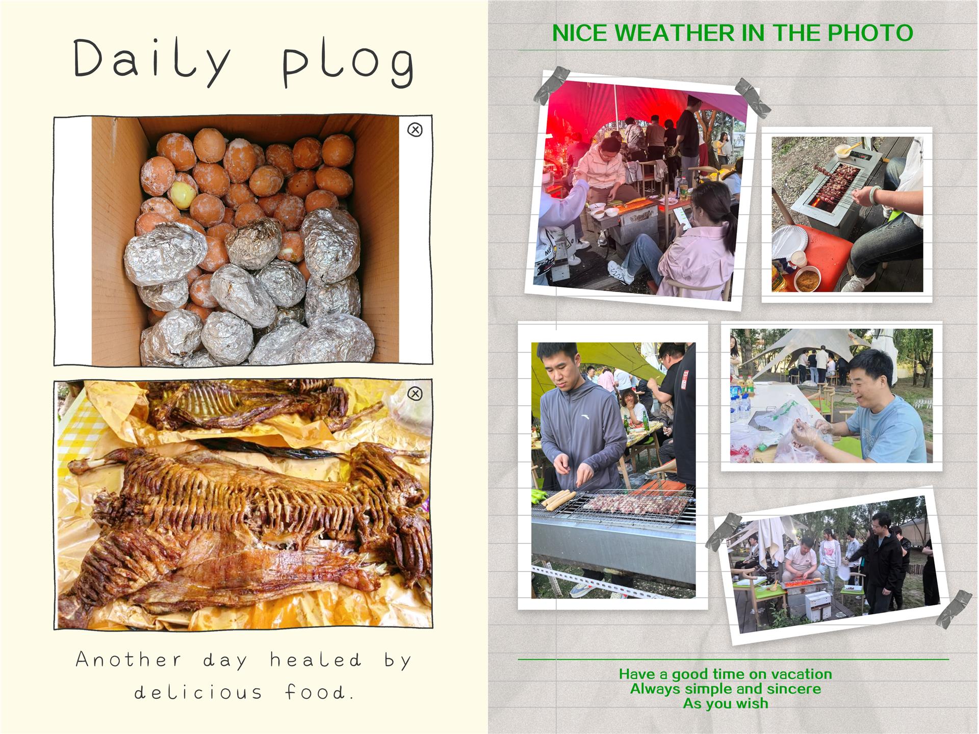 本次活動的重頭戲無疑是令人垂涎的烤全羊!當(dāng)烤制完成的整羊被隆重抬出,現(xiàn)場響起一片歡呼。大家有序排隊(duì),分享這外焦里嫩、鮮美多汁的美味,大快朵頤間,工作的疲憊一掃而空,臉上洋溢著滿足的笑容。與此同時,各部門的”串串兒能手”“燒烤大師”們也紛紛在各自的烤爐前大顯身手,烤制各類肉串、蔬菜等,煙火氣中傳遞著分享的樂趣。