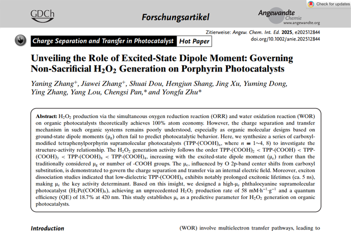 Unveiling the Role of Excited-State Dipole Moment:Governing Non-Sacri?cial H2O2 Generation on Porphyrin Photocatalysts