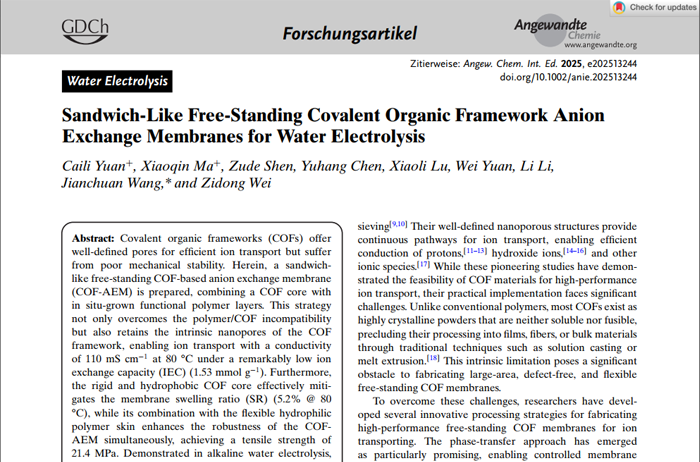 Sandwich-Like Free-Standing Covalent Organic Framework Anion Exchange Membranes for Water Electrolysis