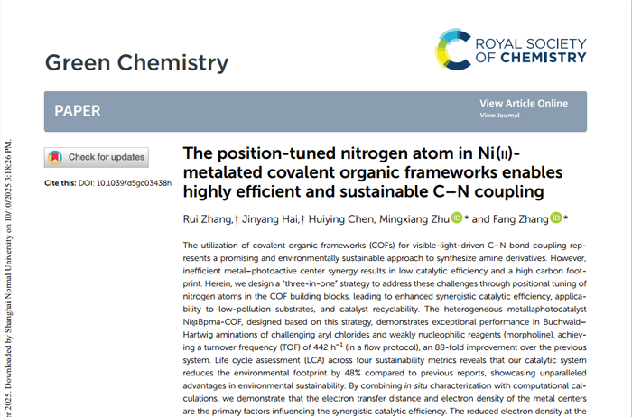 The position-tuned nitrogen atom in Ni(II)-metalated covalent organic frameworks enables highly e?cient and sustainable C–N coupling