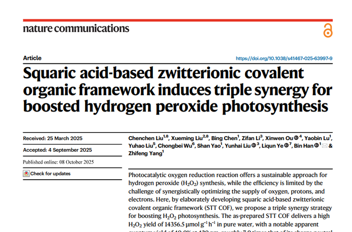 Squaric acid-based zwitterionic covalent organic framework induces triple synergy for boosted hydrogen peroxide photosynthesis