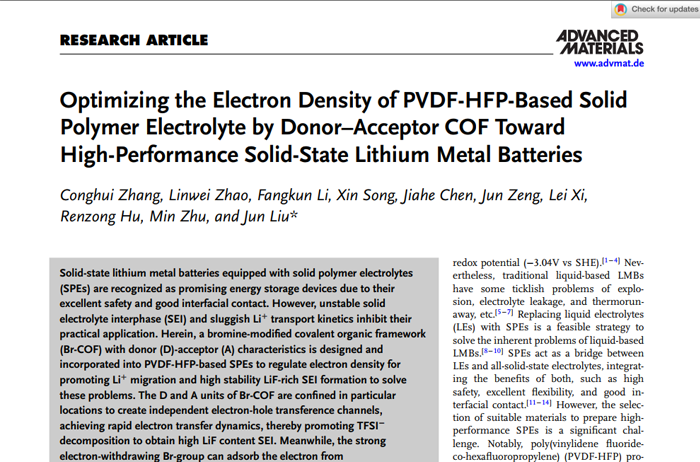 Optimizing the Electron Density of PVDF-HFP-Based Solid Polymer Electrolyte by Donor–Acceptor COF Toward High-Performance Solid-State Lithium Metal Batteries