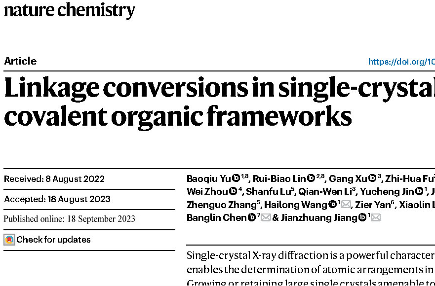 Single-crystal X-ray diffraction is a powerful characterization technique that enables the determination of atomic arrangements in crystalline materials. Growing or retaining large single crystals amenable to it has, however, remained challenging with covalent organic frameworks (COFs), especially suffering from post-synthetic modifications.